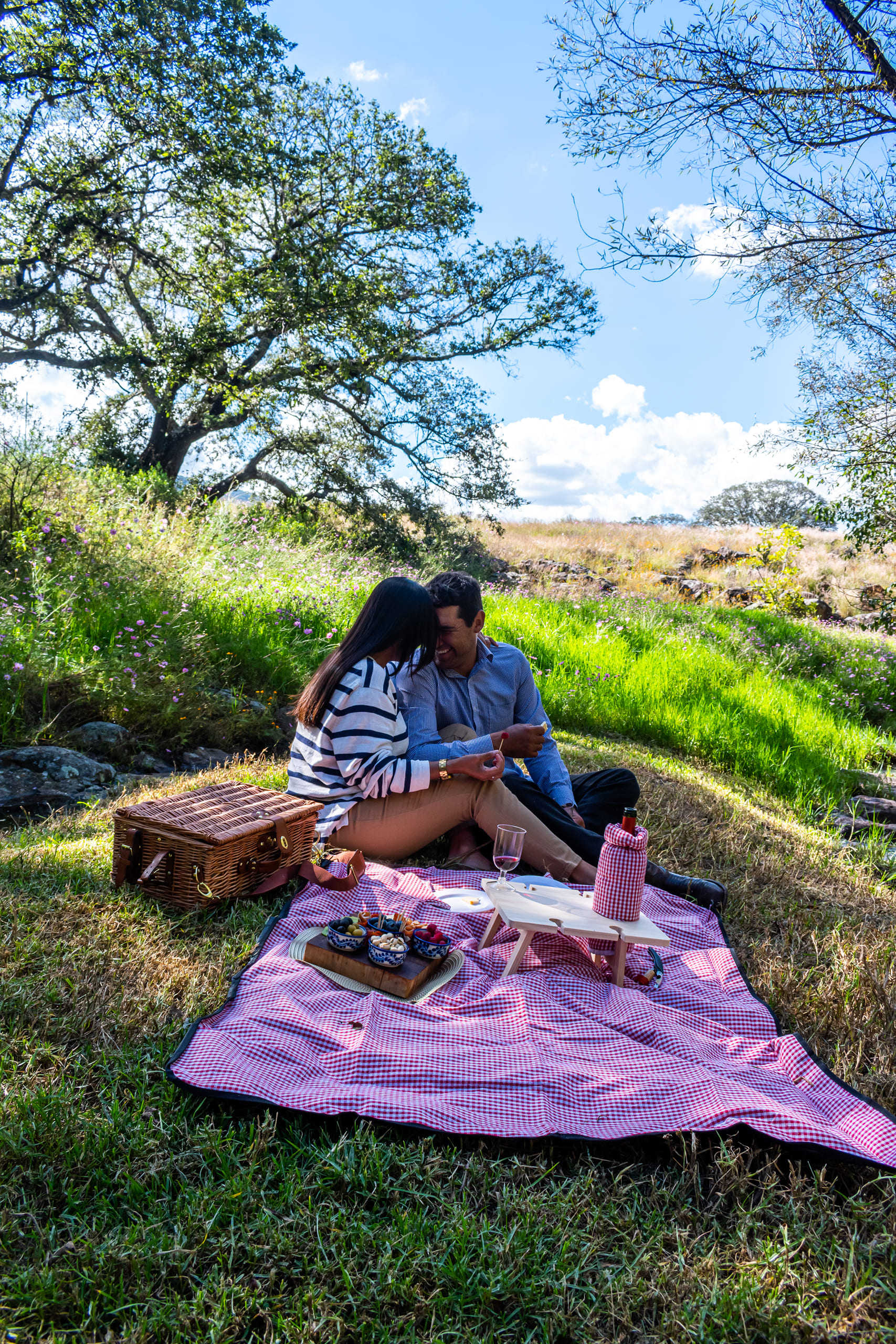 Disfruta de una canasta de picnic mientras el sol se oculta tras la peña.